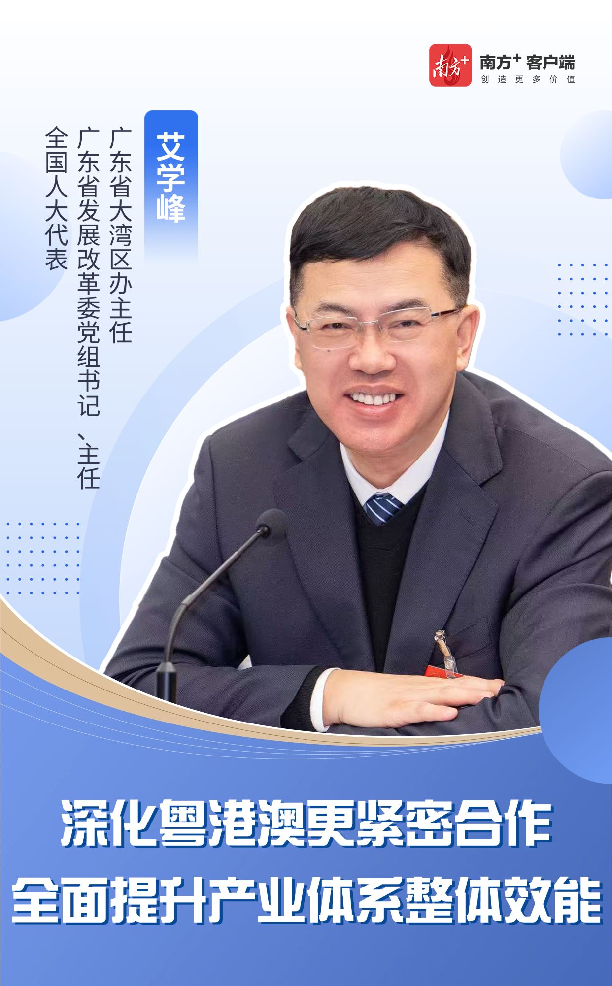 艾学峰代表,接下来,广东将深切落实现代化财产系统的扶植摆设,深化粤港澳大湾区更慎密合做,鞭策科技立异和财产立异融合成长,鞭策新动能积厚成势、保守动能焕新升级,全面提拔财产系统全体效能。(广东)。